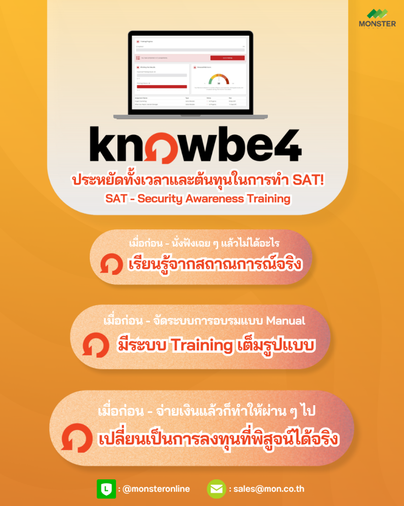 ในโลกที่เว็บปลอมและฟิชชิ่งอีเมลถูกสร้างขึ้นด้วย AI ได้แทบไม่จำกัด การสร้าง “ภูมิคุ้มกันด้านพฤติกรรม” ให้กับพนักงานจึงกลายเป็นหนึ่งในมาตรการสำคัญที่สุดขององค์กร การทำ Security Awareness Training อย่างสม่ำเสมอช่วยให้พนักงานแยกแยะสัญญาณผิดปกติได้ดีขึ้น ไม่คลิกลิงก์มั่ว และไม่ให้ข้อมูลสำคัญกับแหล่งที่ไม่น่าเชื่อถือ โซลูชันอย่าง KnowBe4 ถูกออกแบบมาเพื่อการนี้โดยเฉพาะ ทั้งในด้านการอบรมออนไลน์ การจำลองฟิชชิ่ง (Phishing Simulation) และการวัดผลระดับความเสี่ยงของผู้ใช้ภายในองค์กรอย่างต่อเนื่อง ช่วยให้องค์กรไม่เพียง “ตั้งรับ” ด้วยระบบความปลอดภัย แต่ยัง “เตรียมคน” ให้พร้อมรับมือกับการหลอกลวงทุกรูปแบบอีกด้วยReference