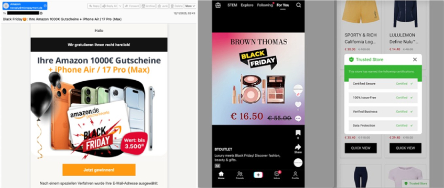 รายงานเดียวกันยังระบุด้วยว่า ปัจจุบันอาชญากรไซเบอร์หันมาใช้เครื่องมือ AI เพื่อสร้างอีเมลฟิชชิ่ง ข้อความ รวมถึงหน้าเว็บปลอมที่ทั้งเนื้อหาและดีไซน์ “สมจริง” มากขึ้นอย่างชัดเจน ทำให้ต่อให้เป็นผู้ใช้ที่มีประสบการณ์ ก็อาจหลงเชื่อได้หากขาดความระวัง อีกเทคนิคที่น่ากังวลคือ SEO Poisoning หรือการใช้โฆษณาบนเสิร์ชเอนจินและการปรับแต่ง SEO ให้เว็บปลอมไปปรากฏอยู่ด้านบนของผลการค้นหา ผู้ใช้ที่ต้องการค้นหาเว็บธนาคารหรือเว็บอีคอมเมิร์ซที่คุ้นเคย จึงมีโอกาสคลิกเข้าเว็บปลอมโดยไม่รู้ตัว เพียงเพราะ “ค้นจาก Google แล้วเห็นลิงก์แรก” ในช่วงเทศกาลช้อปปิ้ง เช่น Black Friday หรือเทศกาลปลายปี นักวิจัยด้านความปลอดภัยพบว่ามีโดเมนที่เกี่ยวข้องกับโปรโมชั่น คำว่า “Flash Sale” หรือคำที่ชวนให้นึกถึงส่วนลดพิเศษ ถูกจดทะเบียนขึ้นมาในเชิงอันตรายจำนวนมาก และถูกใช้เพื่อหลอกขโมยบัญชีและข้อมูลบัตรของเหยื่อ