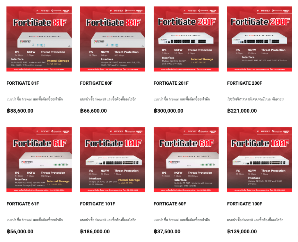 Monster Online ให้บริการจำหน่ายและติดตั้ง FortiGate Firewall ครบวงจร โดยทีมวิศวกรผู้เชี่ยวชาญที่มีประสบการณ์ตรงในการออกแบบระบบความปลอดภัยให้กับองค์กรชั้นนำทั่วประเทศ เราพร้อมให้คำปรึกษา ออกแบบระบบ วางนโยบายความปลอดภัย และดูแลหลังการติดตั้ง เพื่อให้คุณมั่นใจว่าระบบของคุณจะปลอดภัยและทำงานได้อย่างเต็มประสิทธิภาพตลอดเวลา เราพร้อมดูแลตั้งแต่การวางแผน ขนาดของรุ่นที่เหมาะสม ไปจนถึงการตั้งค่า VPN, IPS, SSL Inspection และการจัดการ Security Policy ทั้งหมดในแบบที่เหมาะสมกับโครงสร้างและงบประมาณขององค์กร