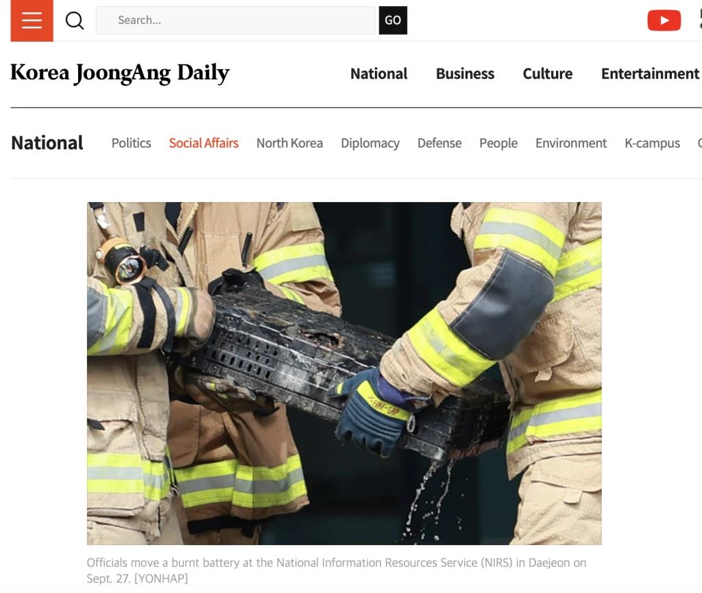 ไม่มี Backup = ไม่มีวันกู้คืน ไฟไหม้ G-Drive ระบบเก็บข้อมูลภาครัฐของเกาหลีใต้ ข้อมูลหายไปถึง 858 TB!