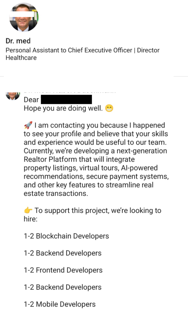 แคมเปญ Contagious Interview ถูกระบุว่าเกี่ยวข้องกับกลุ่มผู้โจมตีจากเกาหลีเหนือ โดยมุ่งเป้านักพัฒนาซอฟต์แวร์โดยเฉพาะสายคริปโทเคอร์เรนซีและ Web3 ผ่านการติดต่อในลักษณะ “รับสมัครงาน” หรือ “ชวนร่วมโปรเจกต์” ผ่านแพลตฟอร์มมืออาชีพอย่าง LinkedIn และช่องทางโซเชียลอื่น ๆ ผู้ที่ถูกเลือกมักได้รับโจทย์เป็นโปรเจกต์ตัวอย่างให้ดาวน์โหลดจาก GitHub, GitLab หรือ Bitbucket แล้วลองรันโค้ดเพื่อพิสูจน์ทักษะ