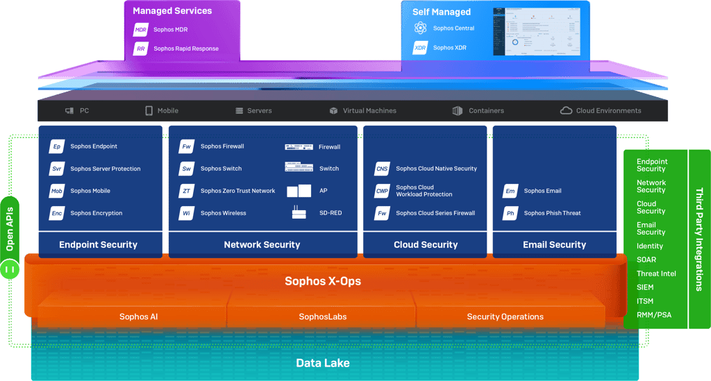 Sophos Ecosystem คือ Ecosystem ด้านความปลอดภัยไซเบอร์ที่ออกแบบมาเพื่อให้องค์กรสามารถปกป้องทั้งเครือข่ายและอุปกรณ์ได้ครบวงจรในแพลตฟอร์มเดียว ด้วยการผสาน Firewall, MDR, XDR, ZTNA, Wireless, Switch, SD-WAN และ Cloud Security ทั้งหมดบริหารจากศูนย์กลางเดียว ตอบสนองภัยคุกคามได้อย่างอัตโนมัติและทันที